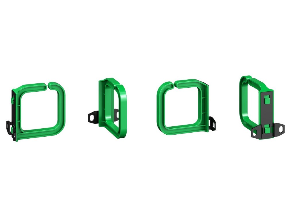 - Farba: vyväzovací panel – čierna prášková farba RAL 9005; oká – čierna, oranžová (OR), zelená (GN)