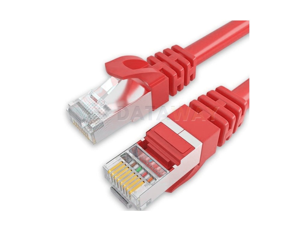 Patch kábel červenej farby v dĺžke 0,50m, prevedenie FTP, kategória 5E. Prierez vodičov je AWG26. Kontakty konektorov sú kryté tenkou vrstvou zlata. Patch káble DATAWAY sú súčasťou komplexného systému produktov pre štruktúrovanú kabeláž.