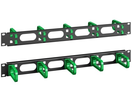 Vyväzovacie panely s plastovými okami sú používané na uloženie a horizontálne vedenie káblov v rozvádzači.