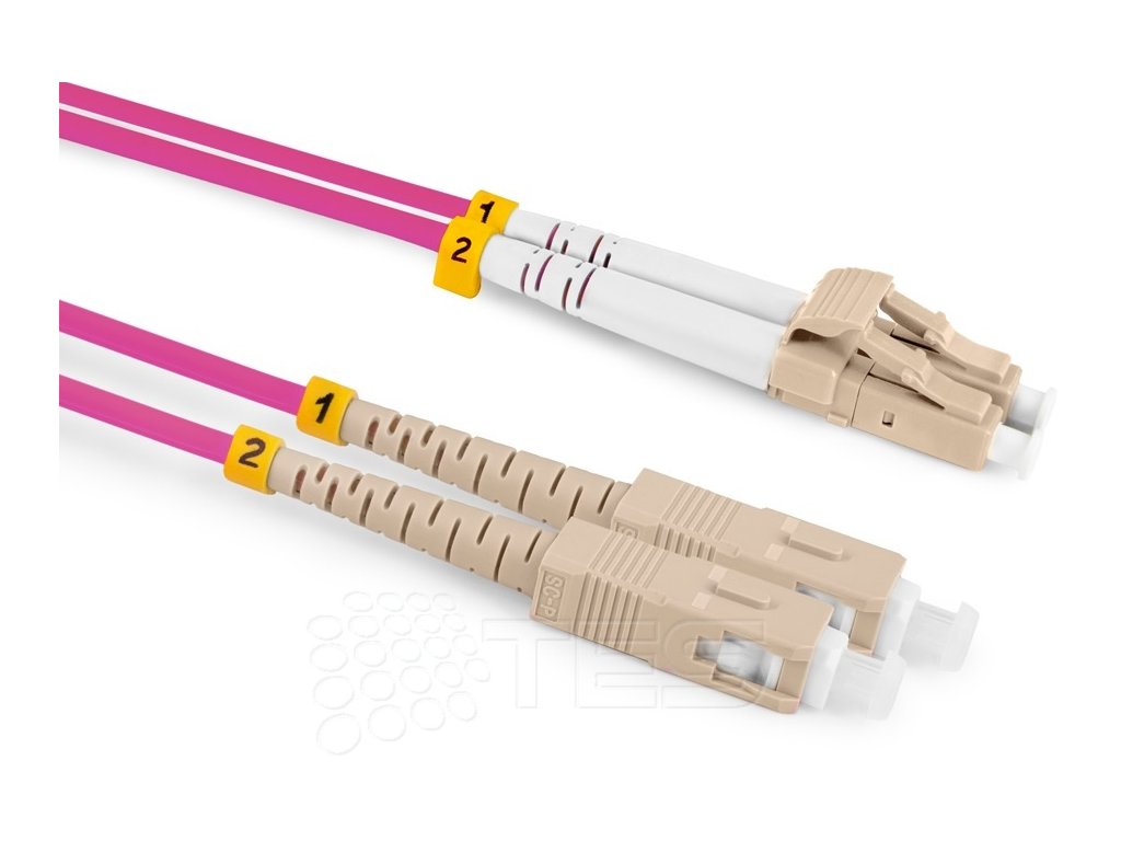 Optický patchcord SC/PC - LC/PC 10m 3mm, duplex, MM, 50/125, OM4