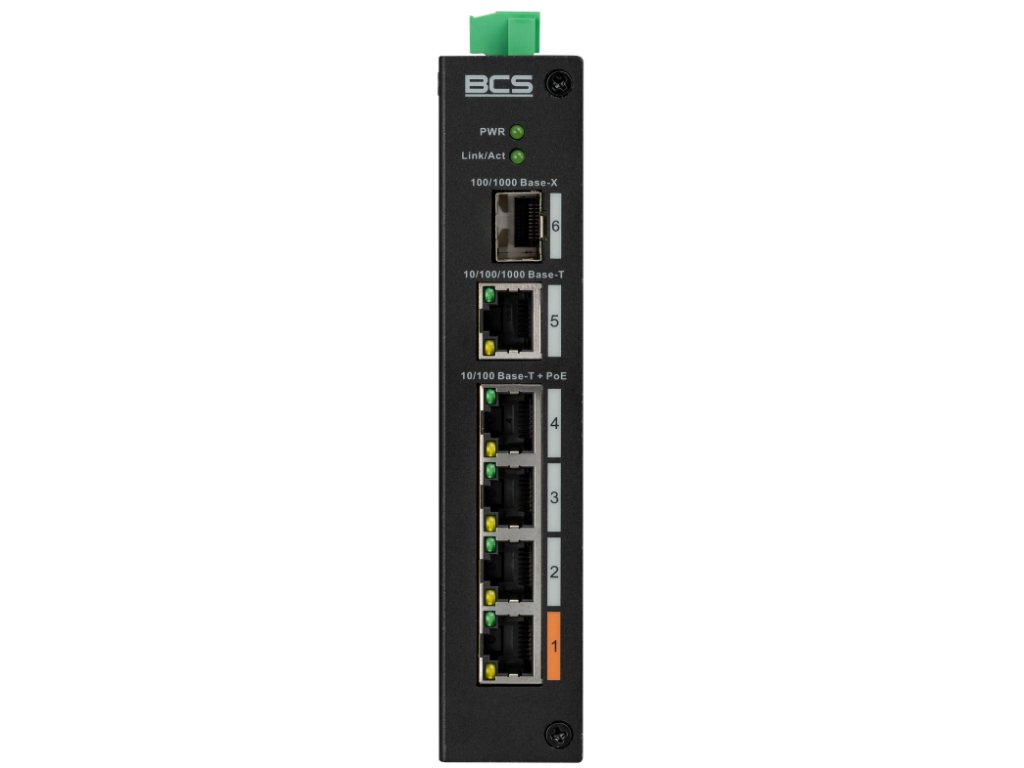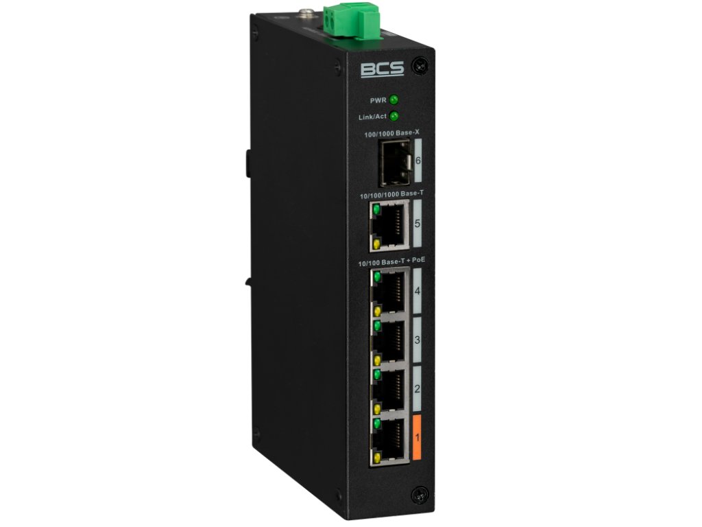 BCS-L-SP0401G-1SFP(2), PoE switch 4x LAN (4x PoE), 1x GLAN, 1x SFP 802.3af/at/bt 60W DIN