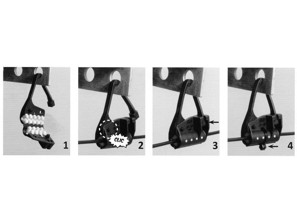 Telo je zaistené okolo kábla 2 sponami a jednou páskou. Všetky časti sú chránené proti UV žiareniu.