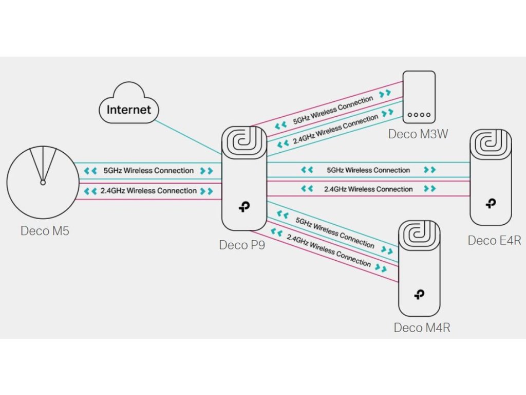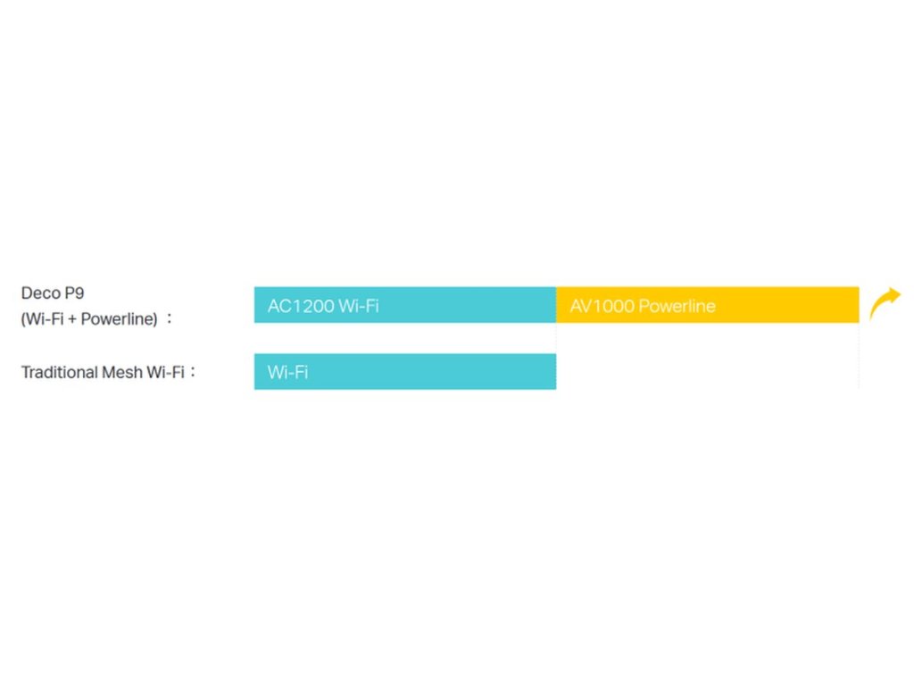 Deco P9 kombinuje duálne Wi-Fi a powerline pre vytvorenie silnejšej mesh siete. Technológia Powerline využíva elektrické rozvody vášho domu na vytvorenie silnejšieho prepojenia medzi jednotkami Deco tým, že znižuje dopad stien a iných prekážok na signál a poskytuje ešte vyššie rýchlosti siete a skutočne bezproblémové pokrytie.