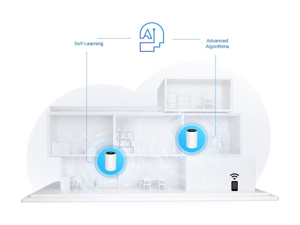 - Systém Mesh s umelou inteligenciou: Inteligentná analýza sieťového prostredia zaistí ideálne pokrytie Wi-Fi šité na mieru vašej domácnosti