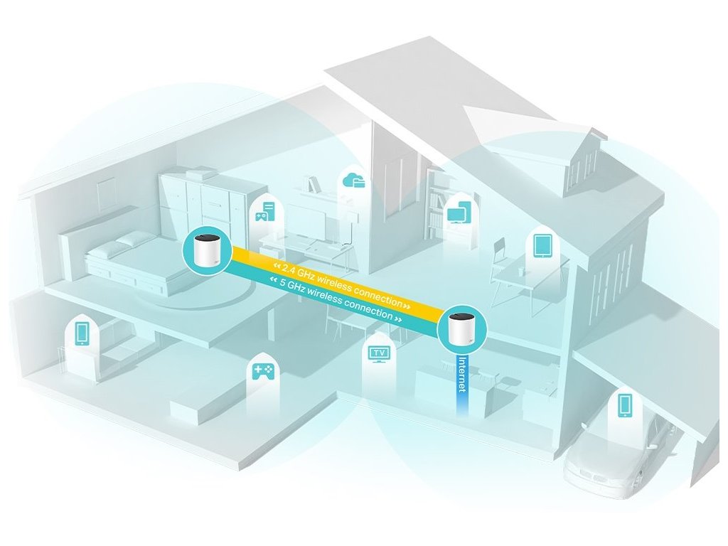 TP-Link Mesh znamená, že jednotky Deco spolupracujú na vytvorení jednej jednotnej siete. Váš telefón alebo tablet sa automaticky pripojí k najrýchlejšej jednotke Deco, keď sa pohybujete doma a vytvára skutočne bezproblémový Wi-Fi zážitok.
