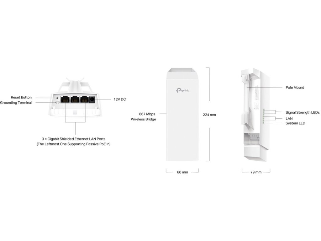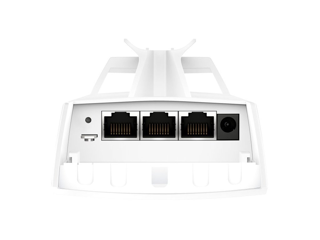 Pre pripojenie do siete slúžia 3 Gigabitové LAN porty z čoho jeden umožňuje pasívne 24V PoE. Ďalšou možnosťou napájania je cez 12V DC jack v prípade vnútorných inštalácií.