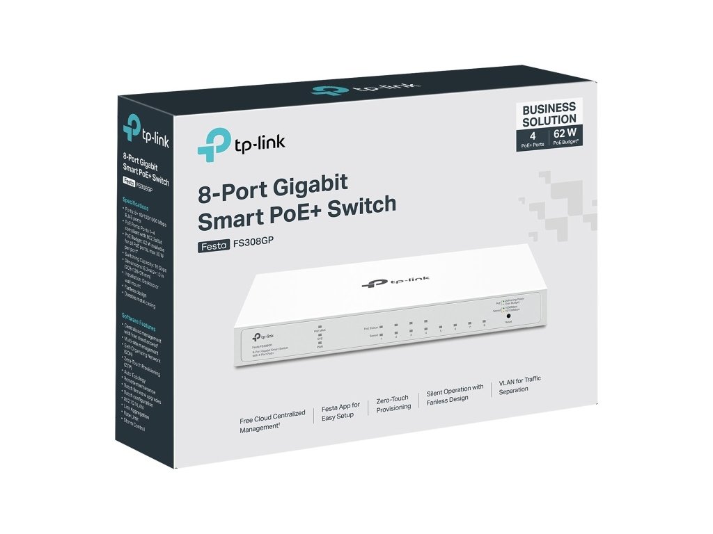 TP-LINK Festa FS308GP, PoE Switch 8x GLAN, (4x PoE+ 802.3at/af)