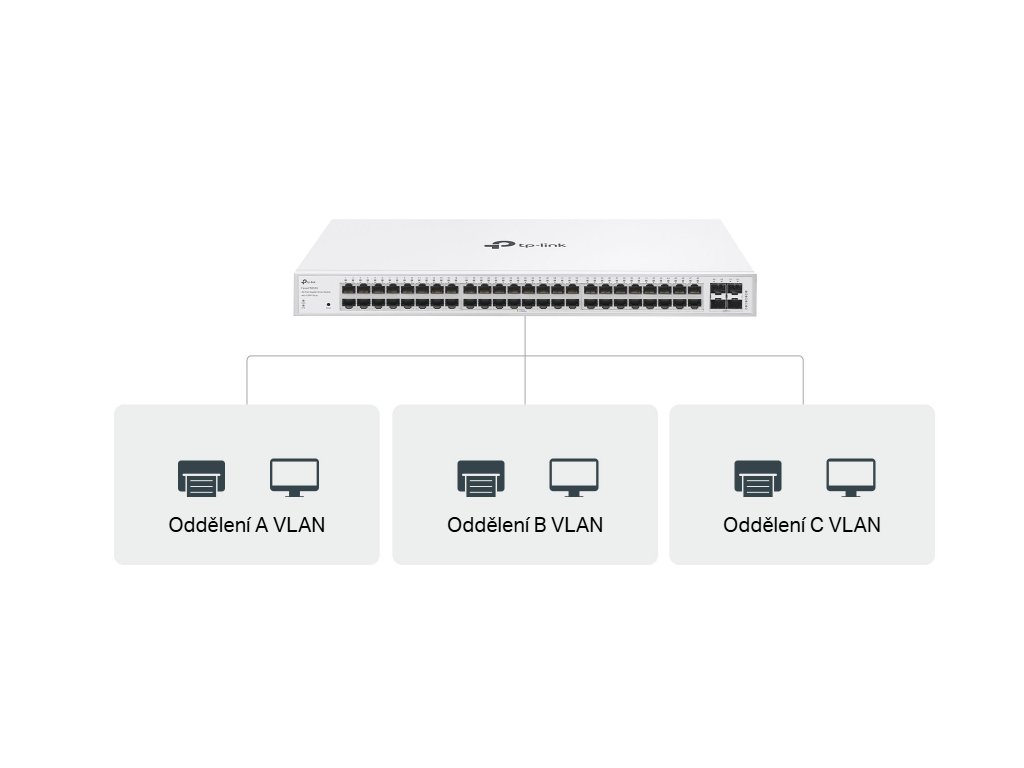 - 48× gigabitových RJ45 portov a 4× gigabitové SFP sloty