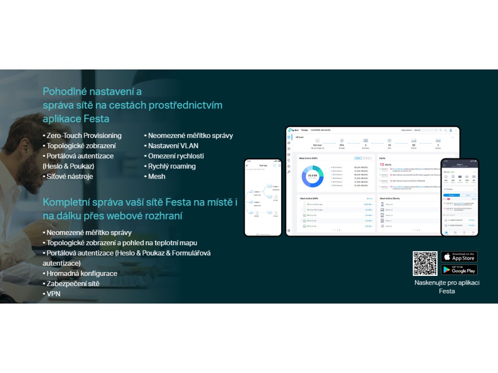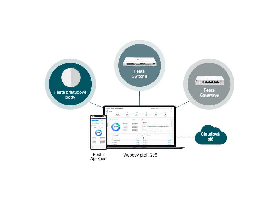 Festa ponúka funkcie na úrovni podnikov s jednoduchosťou zameranou na spotrebiteľov. TP-LINK má bezplatné cloudové centralizované riadenie, ktoré je prístupné prostredníctvom aplikácie Festa alebo webu, poskytujúce základné funkcie pre malé podniky bez zložitosti vyžadovanej pre operácie väčšieho rozsahu.