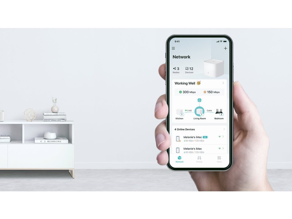 - Systém Mesh s umelou inteligenciou: inteligentná analýza sieťového prostredia zaistí ideálne pokrytie Wi-Fi šité na mieru vašej domácnosti