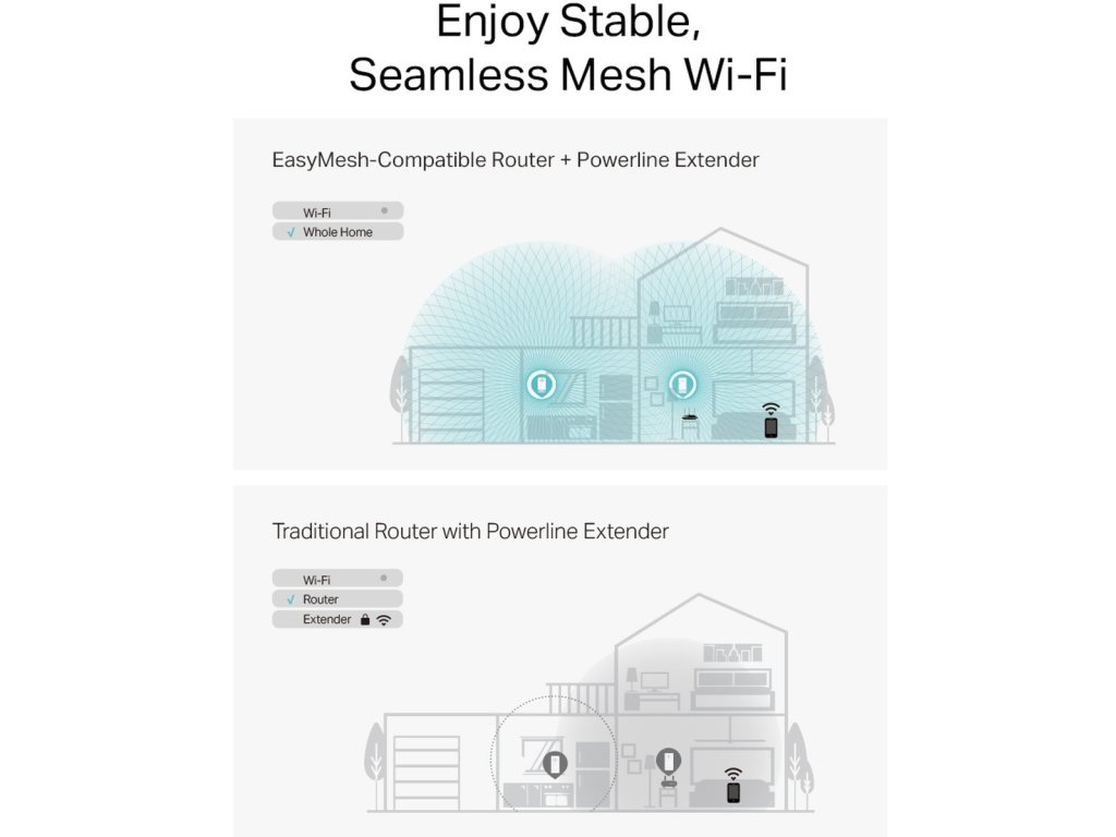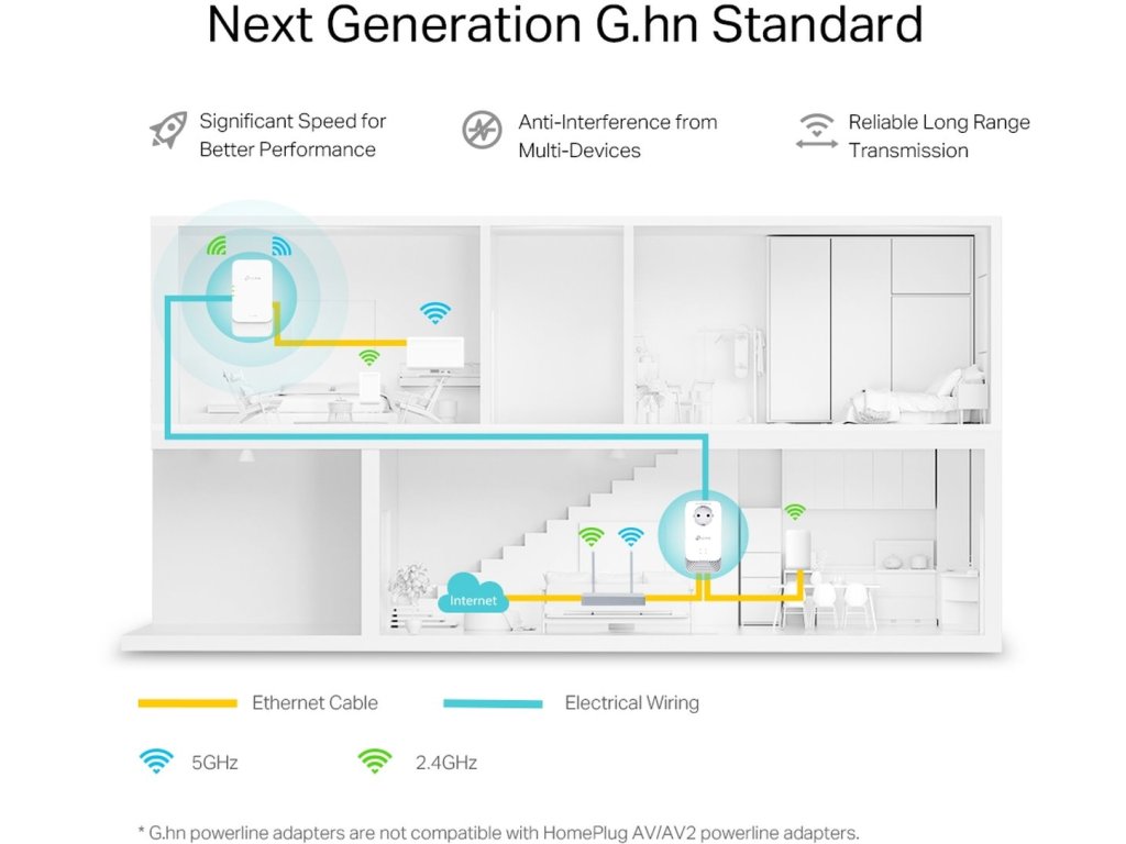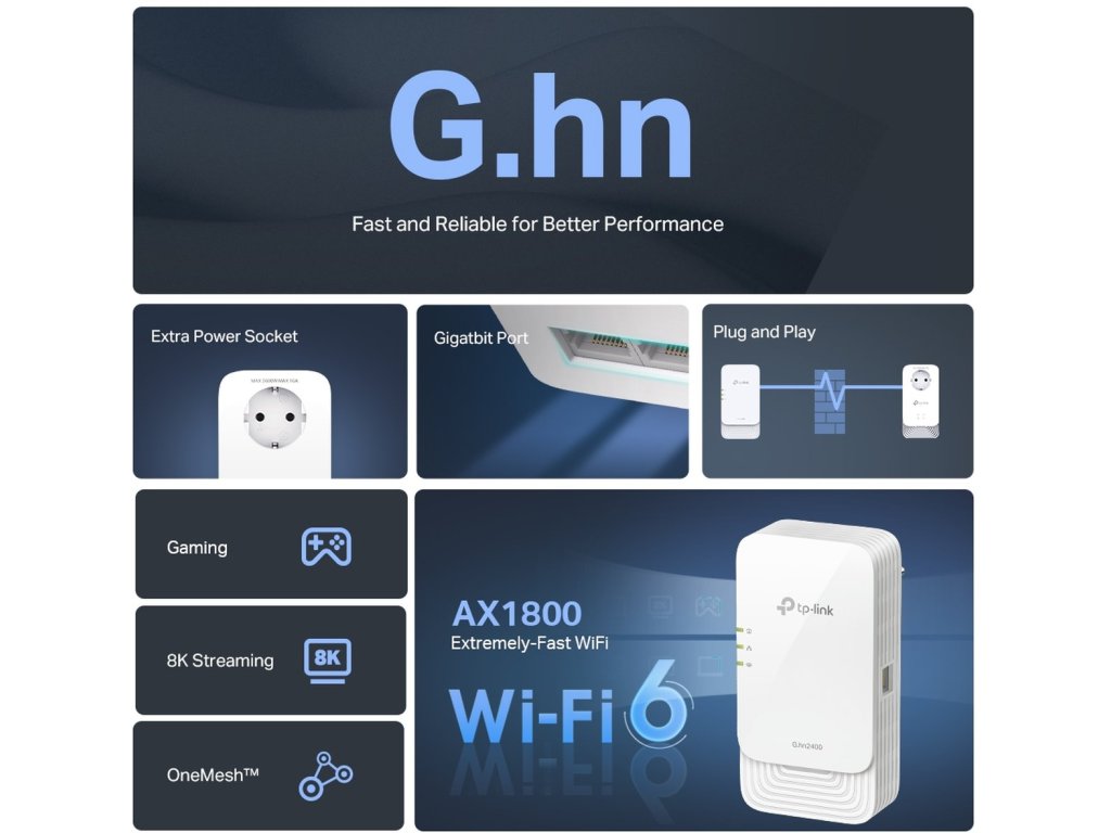 Nové technológie, ktoré prichádzajú s 802.11ax, ako je 1024QAM a Long OFDM umožňujú powerline jednotkám poskytovať špičkové rýchlosti až 574 Mb/s v pásme 2,4 GHz a až 1201 Mb/s v pásme 5 GHz. Užijete si bleskové rýchlosti bez akéhokoľvek oneskorenia.