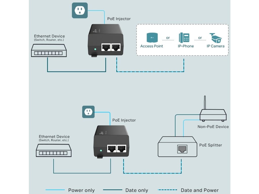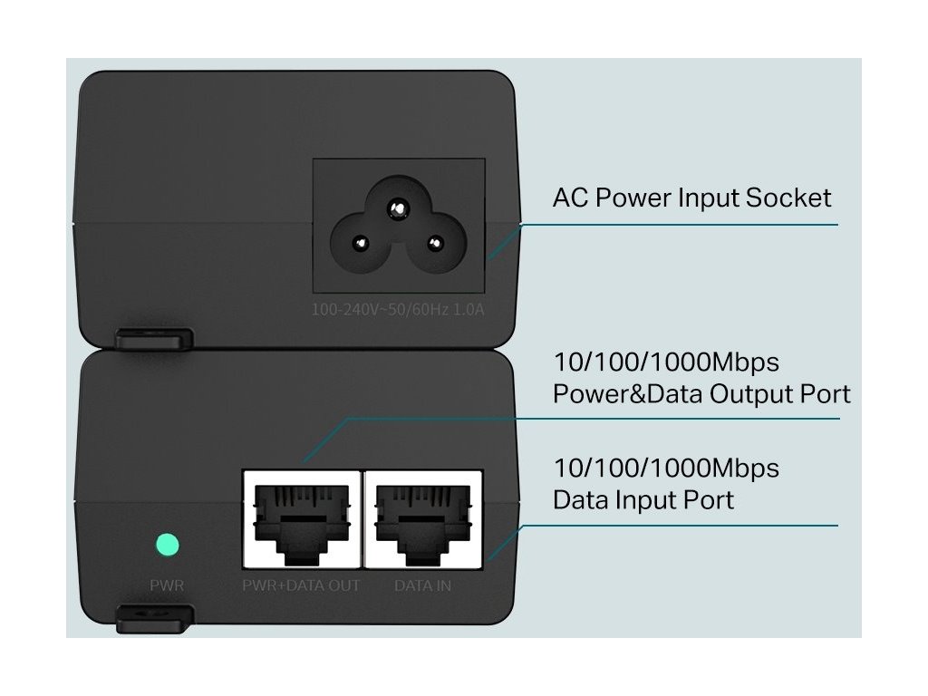 TL-POE160S je veľmi robustný Gigabitový napájací PoE injektor, ktorý podporuje 802.3af/at štandardy s výkonom až 30W, čo je vhodné riešenie pre napájanie väčšiny IP kamier s podporou PoE, VoIP, WiFi AP a ďalších zariadení. Injektor má LED indikáciu, 3-pinový napájací konektor na 230V a dva RJ-45 porty z ktorých prvý je určený na DATA a druhý na DATA+napájanie.