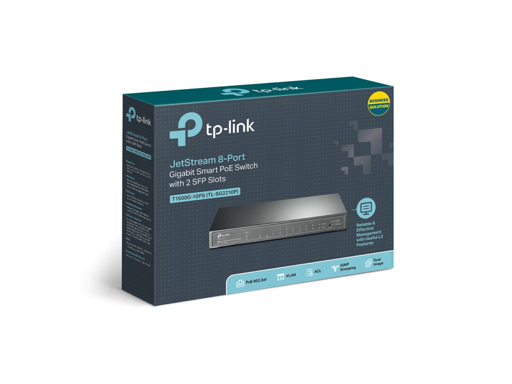 Výkonný gigabitový inteligentný switch od osvedčeného výrobcu TP-Link. Disponuje ôsmimi RJ45 portmi PoE podľa štandardu IEEE 802.3af s celkovou napájacou kapacitou 53 W a ďalej dvojicu slotov SFP. Je ideálnym riešením pre podnikové úrovne, ktoré potrebujú spoľahlivo riadenú sieť. Využíva vyspelé funkcie IP, MAC, ACL, zabezpečenie portov, ochranu proti DoS, kontrolu všesmerového vysielania, DHCP Snooping, autentizáciu 802.1X a Rádius k maximálnemu zabezpečeniu prenosu dát.