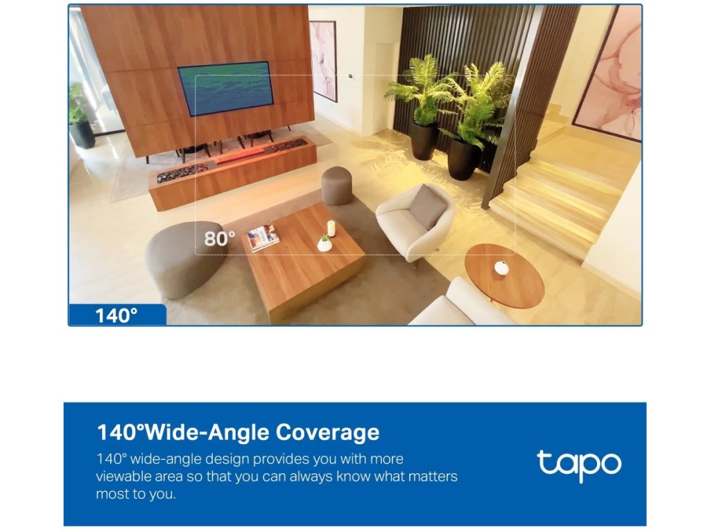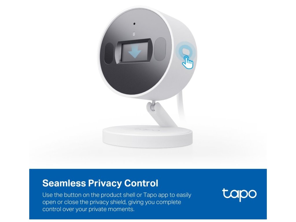 Kamera s rozlíšením 4MP (2560x1440px), fixným objektívom s ohniskom 2.45mm a pozorovacím uhlom 140° je vybavená viditeľným IR (850nm) prísvitom s možnosťou prepnúť na neviditeľný IR (940nm) prísvit pre maximálny komfort. Vďaka kompaktnému dizajnu, flexibilnému držiaku a magnetickej základni je možné kameru okrem iného uchytiť na rôzne magnetické povrchy v rôznych polohách. Kameru je možné mimo štandardnej aplikácie Tapo ovládať aj pomocou hlasových asistentov Google Assistant alebo Alexa.