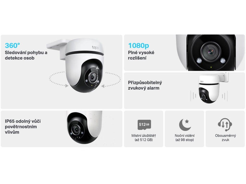 - Flexibilné možnosti úložiska – ukladajte nahrané videá na nainštalovanú kartu microSD (až 512 GB), alebo použite službu cloudového úložiska Tapo Care