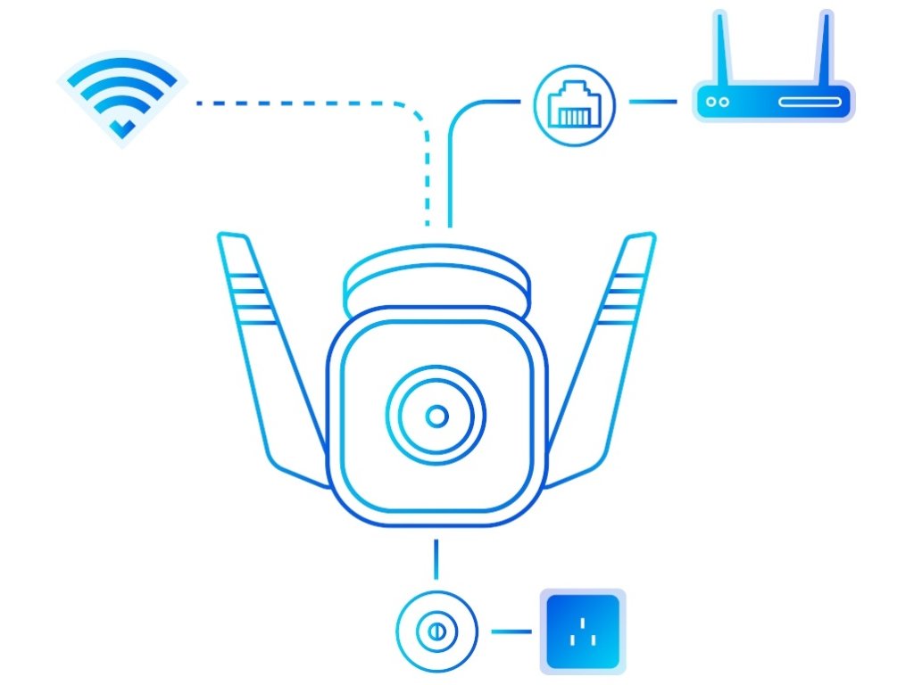 Ethernet bez možnosti PoE, 2.4 GHz Wi-Fi (2x2 MIMO), dvoma fixnými anténami pre prenos bezdrôtového signálu, IP66 krytím, slotom na microSD kartu až do kapacity 128 GB, obojsmerným audiom a IR prísvitom do vzdialenosti 30m.