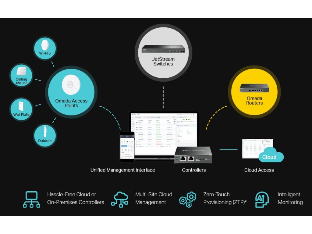 Platforma Omada Software Defined Networking (SDN) integruje sieťové zariadenia, vrátane Access Pointov, Switchov, Gateway routerov a poskytuje 100% centralizovanú správu v cloude. Omada vytvára vysoko škálovateľnú sieť vrátane ovládania z jediného rozhrania. Poskytuje bezproblémové bezdrôtové a káblové pripojenie, ideálne na použitie v pohostinstve, vzdelávaní, maloobchode, kanceláriách a ďalších.