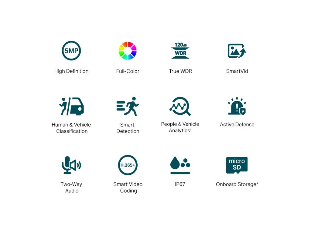 Využíva metódu Smart IR, ktorá zabraňuje prílišnému presvieteniu priestoru, čo umožňuje ľahšie rozpoznanie tváre. Funkcia True WDR zase zaisťuje kvalitné dokreslenie farieb. Kameru je možné vybaviť SD kartou s kapacitou až 256 GB. Na nastavenie a obsluhu kamery slúži aplikácia VIGI app alebo bežné webové rozhranie. Kamera ponúka obojstranné audio. Ďalej disponuje technológiou Full-Color, ktorá umožňuje získať farebný obraz aj v nočných podmienkach.